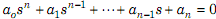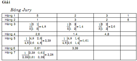 1- Hàng 1 là các hệ số của phương trình đặc tính theo thứ tự chỉ số tăng dần.