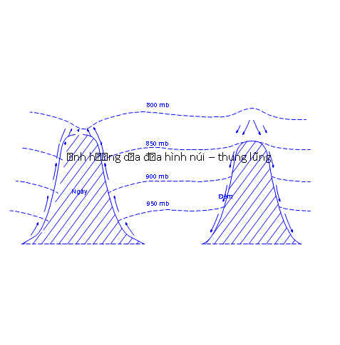 - Thông thường, vào buổi sáng, không có sự chênh lệch áp suất và do đó cũng không có gió (hình 4.3a ).