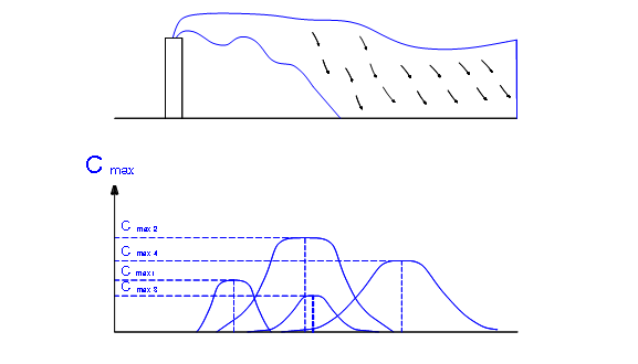 - Tồn tại Vgió mà khi đó nồng độ cực đại của chất ô nhiễm tại mặt đất do một nguồn thải đạt giá trị lớn nhất và được gọi là Vgió nguy hiểm.