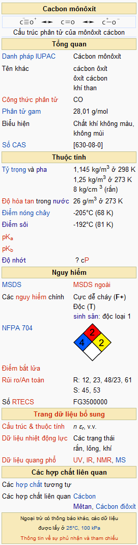 Cacbon mônôxít, công thức hóa học là CO, là một chất khí không màu, không mùi, bắt cháy và có độc tính cao. Nó là sản phẩm chính trong sự cháy không hoàn toàn của cácbon và các hợp chất chứa cácbon.
