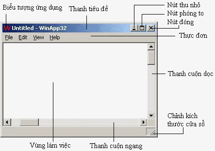 Trong một ứng dụng đồ họa 32-bit, cửa sổ (window) là một vùng hình chữ nhật trên màn hình, nơi mà ứng dụng có thể hiển thị thông tin ra và nhận thông tin vào từ người sử dụng. Do vậy, nhiệm vụ đầu tiên của một ứng dụng đồ họa 32-bit là tạo một cửa sổ.