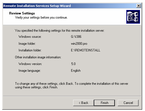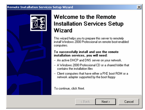 - Sau khi cài đặt hết các dịch vụ của Win2k , chúng ta chỉ việc chọn mục tương ứng trong Windows Component Wizard , đợi Control Panel nạp dịch vụ mới đó từ I386 vào đĩa cứng , khởi động lại máy , thế là dịch vụ đó sẽ được mở lên và chạy . Thế nhưng RIS hơi khác hơn một chút , bởi vì RIS cũng tạo ra một hình ảnh đầu tiên nữa . Hình ảnh đầu tiên này là hình ảnh đơn giản nhất có thể có được (nó chỉ là một bản sao của thư mục I386 từ đĩa Cd – rom Win2k mà thôi) .