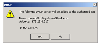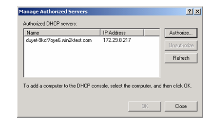 Chúng ta chọn mục Manager Authorized Server , một danh sách các DHCP Server đã được cấp phép sẽ hiện ra , như trong hình