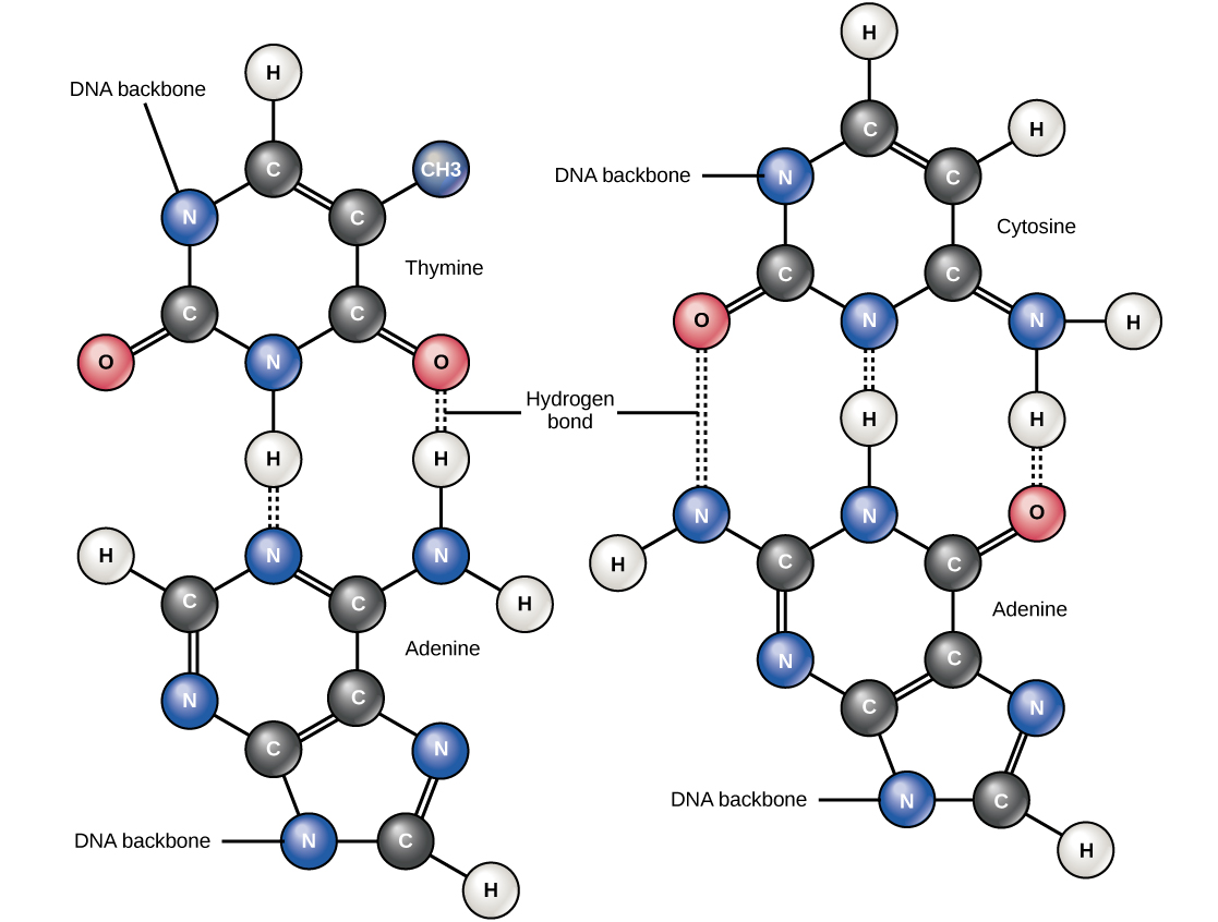 Hydrogen bonds between functional groups (within the same molecule or between different molecules) are important to the function of many macromolecules and help them to fold properly into and maintain the appropriate shape for functioning. Hydrogen bonds are also involved in various recognition processes, such as DNA complementary base pairing and the binding of an enzyme to its substrate, as illustrated in [link].