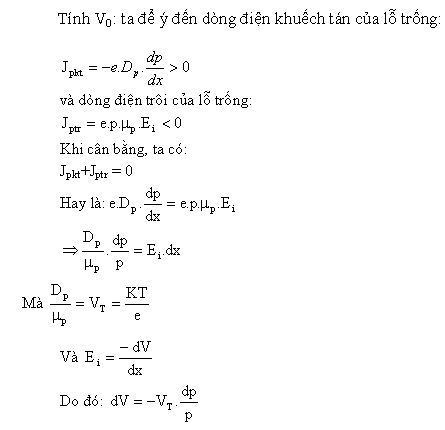 Tương tự như trên, ta cũng có thể tìm V0 từ dòng điện khuếch tán của điện tử và dòng điện trôi của điện tử.