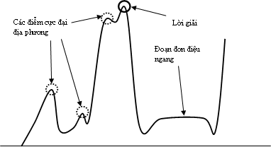 Đoạn đơn điệu ngang (a plateau) : là một vùng bằng phẳng của không gian tìm kiếm, trong đó, toàn bộ các trạng thái lân cận đều có cùng giá trị.