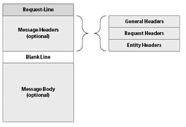 Một HTTP request bắt đầu với một Request-Line và có thể bao gồm các header và message body. Phần header có thể mô tả quá việc truyền dữ liệu, xác định các yêu cầu hay phần message body kèm theo.