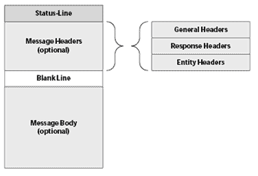 Một HTTP response bắt đầu với một Status-Line và có thể chứa các header và một message body. Header có thể mô tả quá trình truyền dữ liệu, xác định response, hoặc phần body kèm theo.