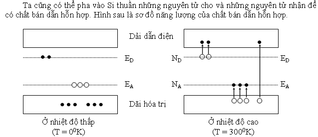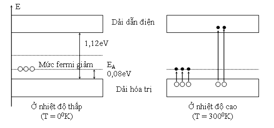 Ở nhiệt độ thấp (T=00K), tất cả các điện tử đều có năng lượng trong dải hóa trị. Nếu ta tăng nhiệt độ của tinh thể sẽ có một số điện tử trong dải hóa trị nhận năng lượng và vượt dải cấm vào dải dẫn điện, đồng thời cũng có những điện tử vượt dải cấm lên chiếm chỗ những lỗ trống có năng lượng EA.