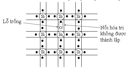 Thay vì pha vào Si thuần một nguyên tố thuộc nhóm V, ta pha vào những nguyên tố thuộc nhóm III như Indium (In), Galium (Ga), nhôm (Al),... Bán kính nguyên tử In gần bằng bán kính nguyên tử Si nên nó có thể thay thế một nguyên tử Si trong mạng tinh thể. Ba điện tử của nguyên tử In kết hợp với ba điện tử của ba nguyên tử Si kế cận tạo thành 3 nối hóa trị, còn một điện tử của Si có năng lượng trong dải hóa trị không tạo một nối với Indium. Giữa In và Si này ta có một trang thái năng lượng trống có năng lượng EA nằm trong dải cấm và cách dải hóa trị một khoảng năng lượng nhỏ chừng 0,08eV.