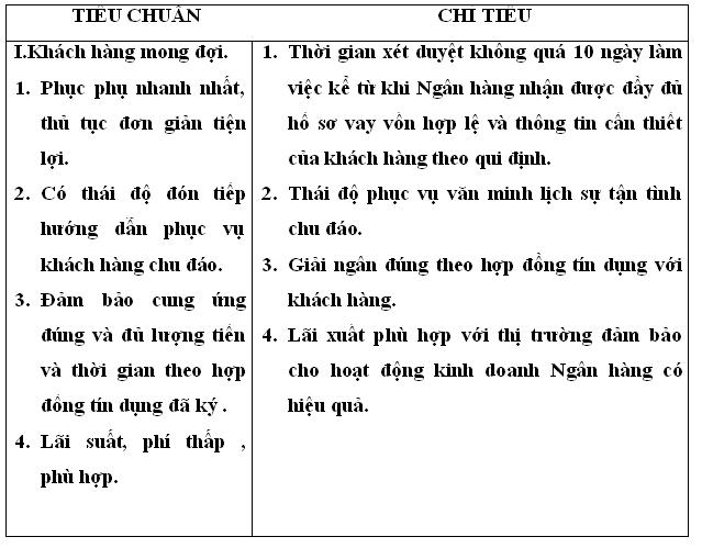 ( Tiêu chuẩn chất lượng của quy trình tín dụng ngắn hạn trang bên ).