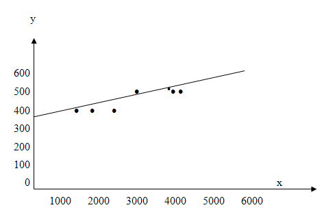 Đường hồi qui cắt trục tung ở điểm có tung độ là 309.740, đây chính là thành phần chi phí bất biến trong chi phí bảo trì. Đồng thời, quan sát chúng ta nhận thấy đường hồi qui đi qua điểm tháng 5 có mức độ hoạt động là 4.000 km với chi phí bảo trì tương ứng là 495.000. Thay giá trị chi phí bất biến (309.740 đ) vào hàm biểu diễn của chi phí hỗn hợp ở điểm này, ta xác định được hệ số a của thành phần chi phí biến đổi là 46,9.