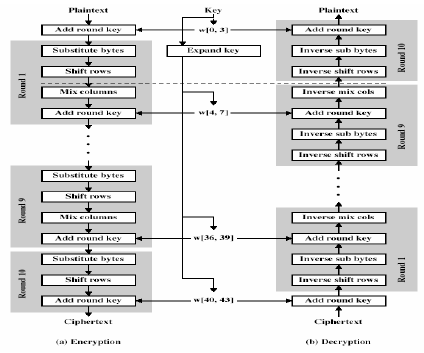 - Dùng khoá 128 bit (16 byte) và mở rộng thành mảng gồm 44/52/60 từ 32 bit.