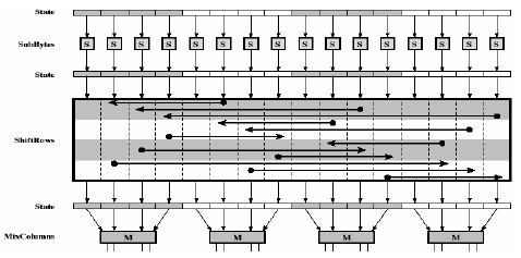 - MixColumns - quá trình trộn làm việc theo các cột trong khối theo một chuyển đổi tuyến tính.