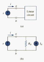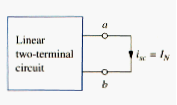 Where is the contribution to i due to the external source v and contains the contributions to i due to all independent sources. When the terminals a-b are short-circuited, v = 0 so that , where is the short-circuit current flowing out of terminal a, which is the same Norton current , i.e.,