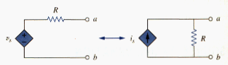 which expresses the voltage-current relation at terminals a and b of the circuit in [link](b). Thus, the two circuits in [link](a) and [link](b) are equivalent.