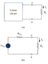 According to Thevenin’s theorem, the linear circuit in [link](a) can be replaced by that in [link](b). The load in [link] may be a single resistor or another circuit. The circuit to the left of the terminals a-b in [link](b) is known as the Thevenin equivalent circuit; it was developed in 1883 by M. Leon Thevenin (1857-1926), a French telegraph engineer.