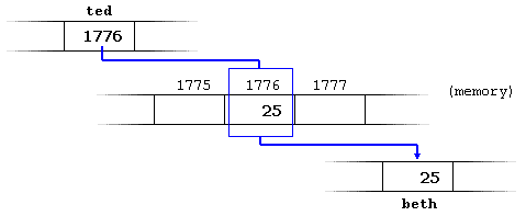 (chúng ta có thể đọc nó là: "beth bằng giá trị được trỏ bởi ted" beth sẽ mang giá trị 25, vì ted bằng 1776 và giá trị trỏ bởi 1776 là 25.