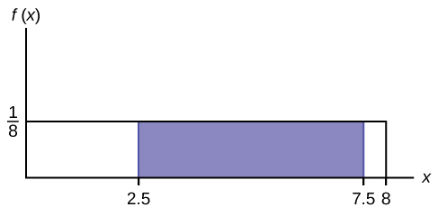Consider the function f(x) = for 0 ≤ x ≤ 8. Draw the graph of f(x) and find P(2.5 < x < 7.5).