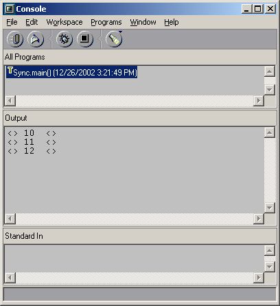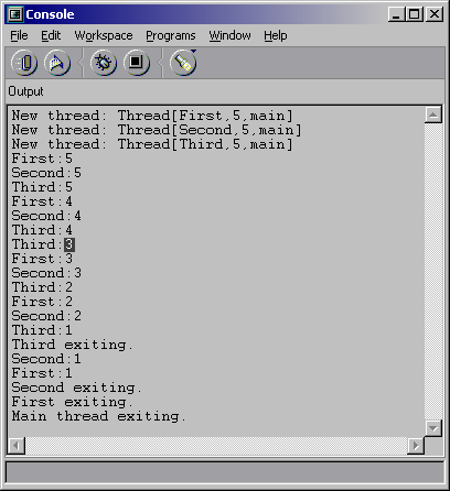 Không cần các phương thức wait() và notify(), luồng bức vẽ (canvas) không thể biết khi nào cập nhập hiển thị. Kết quả xuất ra ngoài của chương trình được đưa ra như sau: