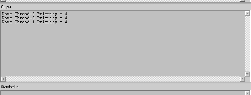 System.out.println("Name "+ getName()+" Priority = "+ getPriority());