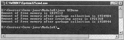 System.out.println("Amount of free memory after garbage collection is " + r.freeMemoryO);