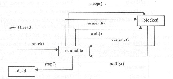 Khi các luồng khác liên kết với các đối tượng, gọi phương thức notify(), luồng đi vào trở lại phạm vi “ready” (sẵn sàng) Luồng đi vào phạm vi “blocked” (khối) khi nó đang thực thi các phép toán vào/ra (Input/output). Nó đi vào phạm vi “ready” (sẵn sàng) khi các phương thức vào/ra nó đang đợi cho đến khi được hoàn thành. Luồng đi vào phạm vi “dead” (chết) sau khi phương thức run() đã được thực thi hoàn toàn, hoặc khi phương thức stop() (dừng) của nó được gọi.