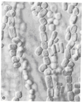 3. Giống Geotrichum và Oospora có sợi nấm kéo thẳng, vuông hay chử nhật và tế bào vách dầy gọi là bào tử đốt (arthrospores) (Hình 1.12)