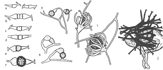 Kiểu hai sợi nấm có giới tính đực và cái tiếp hợp nhau sinh ra bào tử có tên là tiếp hợp tử (myxospores), tiếp hợp tử là đặc trưng của nhóm nấm Myxomycetes (Hình 1.13).