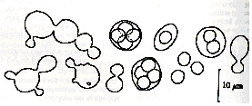 - Chồi hình thành từ tế bào nấm men: Cryptococcus và Candida là những loại bào tử tản đơn giản nhất, gọi là bào tử chồi (blastospores)
