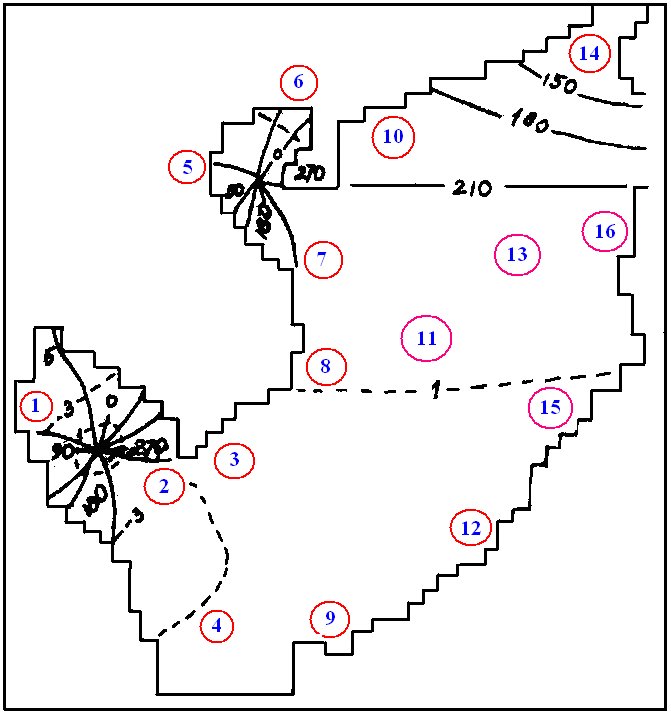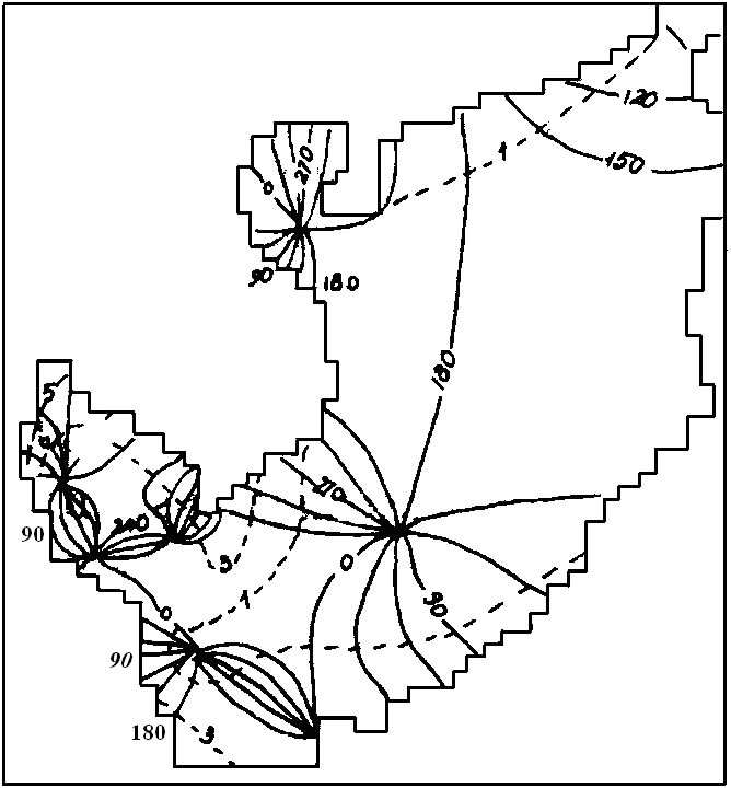 Để tái lập cấu trúc không gian của các mốt đã xây dựng các bản đồ đường đồng pha và đồng biên độ của bảy mốt tuần tự ứng với các chu kỳ 60, 24, 19,2, 17,2, 11,6, 10,6 và 9,7 giờ. Các hình 2 và 3 là những thí dụ về các bản đồ kiểu ấy. Nét nổi bật trên tất cả các bản đồ là tồn tại các hệ thống rốn triều quay ngược chiều kim đồng hồ. Những biên độ lớn nhất thấy ở các vùng nước nông, đặc biệt ở những đỉnh vịnh.
