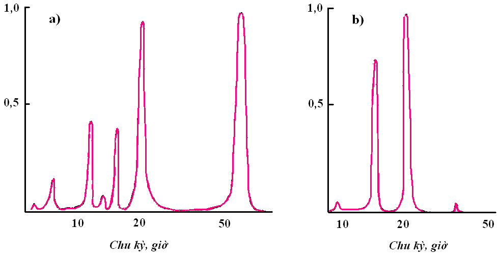 Độ dài các chuỗi trị số mực nước tính được dùng để nhận phổ các dao động tự do bằng 1000 với độ gián đoạn bằng 1 giờ.