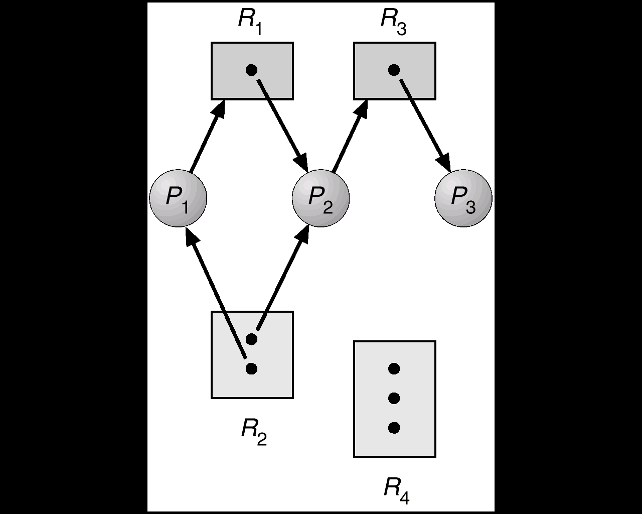 - Quá trình P2 đang giữ một thể hiện của loại tài nguyên R1 và R2 và đang chờ một thể hiện của loại tài nguyên R3.