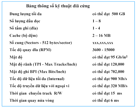 Bảng V.1: Thông số kỹ thuật của đĩa cứng