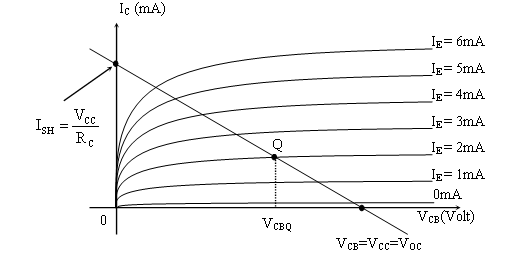 Đây là phương trình đường thẳng lấy điện một chiều (đường thẳng lấy điện tỉnh). Trên đặc tuyến ra, giao điểm của đường thẳng lấy điện với IE tương ứng (thông số) của đặc tuyến ra chính là điểm tỉnh điều hành Q.