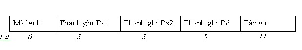 Các thanh ghi nguồn Rs1 và Rs2 được sử dụng tuỳ theo tác vụ, kết quả được đặt trong thanh ghi đích Rd.