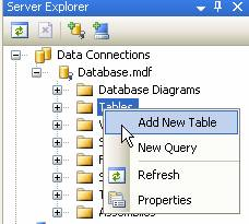 o bước 3.2 bạn nhấn chuột phải vào Tables và chọn Add New Table