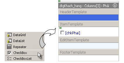 Chọn Edit Template cột Phái, chọn điều khiển chkPhai.