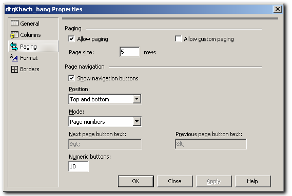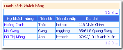 - - Pager: Định dạng cho dòng chứa các nút lệnh phân trang.