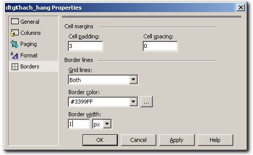Để thực hiện các thao tác định dạng, chúng ta chọn chức năng Property Builder… từ thực đơn ngữ cảnh.