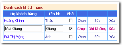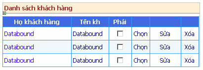 Cập nhật dữ liệu trực tiếp trên lưới trong ASP.Net được hỗ trợ khá tốt về giao diện. Công việc còn lại của chúng ta là thiết kế các nút lệnh như: Chọn, Sửa/Ghi - Không, Hủy, … và viết các lệnh cập nhật dữ liệu.