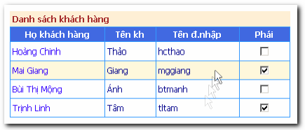 Tạo hiệu ứng chọn khi rê chuột qua các dòng dữ liệu
