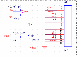 Trong đó chúng ta có thể thấy 2 chân 1,2 được cấp nguồn cho LCD hoạt động, chân thứ 3 (chân VSS) được nối vào đầu ra của biến trở dùng để điều chỉnh độ tương phản (phải điều chỉnh VSS hợp lý thì LCD mới hiển thị được) 2 chân 15,16 đây là 2 chân cấp nguồn dung để bật đèn của LCD từ chân 4->14 là các chân điều khiển được nối với vi điều khiển, các chân 4,5,6 được để điều khiển hoạt động của LCD, các chân còn lại là 8 bit Data dùng để truyền nhận dữ liệu. Chúng ta có thể giao tiếp Data 8 bit hoặc 4 bit như trong mạch của chúng ta truyền Data dưới dạng 4 bit. Việc truyền dưới dạng 4bit hoặc 8 bit phải được thiết lập cả phần cúng và phần mềm.