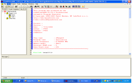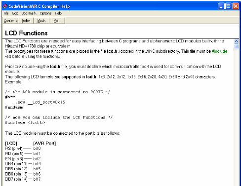 Code cho LCD các bạn có thể tham khảo trong Help bằng cách chọn trên menu Help → Help Topic(hoặc ấn F1). Được cửa sổ Help như sau: