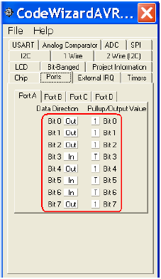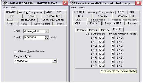 Ta có thể sử dụng CodeWizardAVR để thiết lập cho các PORTx và Pinx.