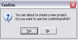 Chọn Yes được cửa sổ CodeWinzardAVR như sau :