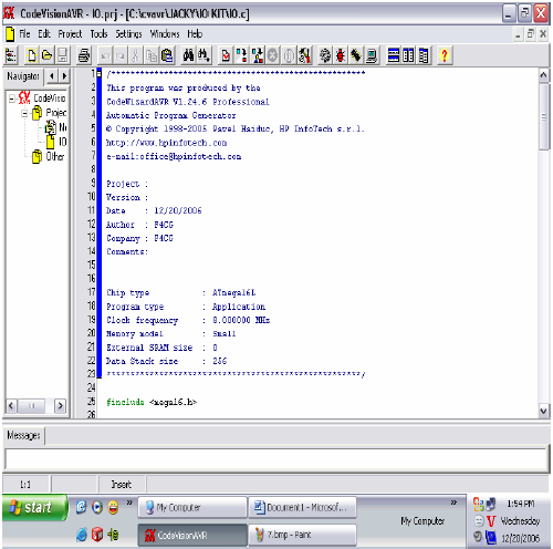 Sau khi nhớ song 3 file : IO.c – IO.prj – IO.cwp được cửa sổ như sau: