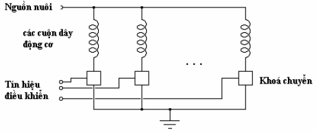 Điện áp được cấp qua các khoá chuyển để nuôi các cuộn dây, tạo ra từ trường làm quay rotor. Các khoá ở đây không cụ thể, có thể là bất cứ thiết bị đóng cắt nào điều khiển được như rơle, transitor công suất... Tín hiệu điều khiển có thể được đưa ra từ bộ điều khiển như vi mạch chuyên dụng, máy tính. Với động cơ nhỏ có dòng cỡ 500 mili Ampe, có thể dùng IC loại dãy darlington collector hở như :