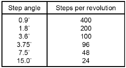 Bước góc của động cơ bước được chế tạo theo bảng tiêu chuẩn sau: