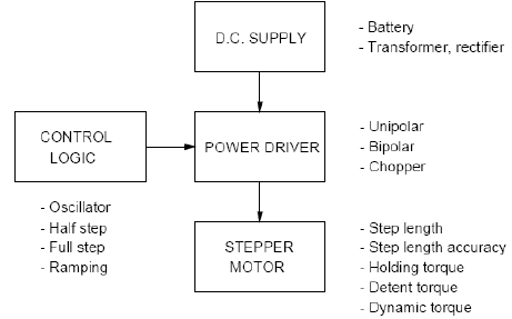 Một hệ thống có sử dụng động cơ bước có thể được khái quát theo sơ đồ sau.